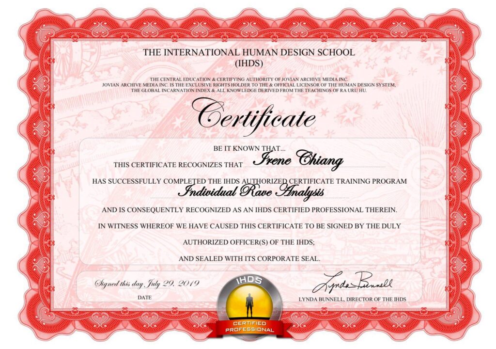 終於回來更新六二筆記,我拿到人類圖分析師執照了,今後的人生除了寫稿(?),將會提供人類圖解讀服務。需要查驗資格的話,可以在人類圖國際總部的官方認證名單: www.ihdschool.com/professionals 搜尋Irene Chiang,裡面有我的人類圖,以便有心人士(?)按圖識人。