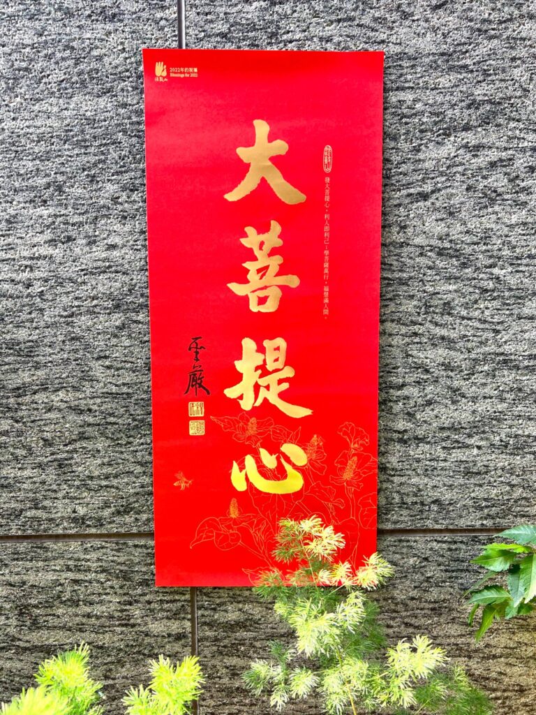 朋友給我法鼓山的春聯(好像正式名稱叫「春條」),今年提的「大菩提心」四字有點像呼籲,是說各種吉祥話也都在呼籲能量往吉祥的狀態流動啦。
